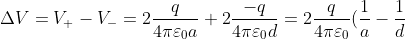 Il potenziale sulla sfera positiva ha la componente positiva data da se stessa e la componente negativa data dalla sfera lontana:
