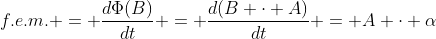Per prima cosa voglio calcolare la f.e.m. indotta sul circuito che, per Faraday-Neumann-Lenz, è uguale alla rapidità di variazione di flusso di campo magnetico attraverso la spira. In questo caso il campo magnetico di ogni solenoide è perpendicolare alla superficie della spira e attraversa un'area corrispondente alla sezione del solenoide dunque dove è la derivata di e è la somma delle aree delle sezioni dei due solenoidi (ossia ).