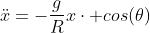 La massa ha una forza peso , e considero solo la componente perpendicolare all'anello . Dato che quest'ultimo è vincolato a muoversi solo orizzontalmente l'unica forza che accelera il centro dell'anello avrà un intensità di ovvero, riscrivendo il tutto . Ovviamente per piccole oscillazioni lo si approssima al prim'ordine ad 1, da cui la frequenza del centro dell'anello (ovvero anche quella della massa perchè fissata all'anello) è