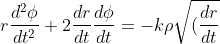 ^2= -\frac{GM_{Terra}}{r^2} - k \rho \sqrt{(\frac{dr}{dt})^2 + (r \frac{d \phi}{dt})^2} \frac{dr}{dt})