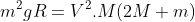 A questo punto io avrei impostata la conservazione che vale cioè quella dell'energia meccanica fra la posizione iniziale e quella richiesta nel punto più basso di m. Abbiamo . Infatti Considerato che mv=2MV otteniamo ovvero da cui