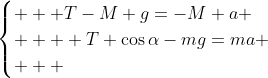 La prima eq. è dovuta al fatto che l'accelerazione di M è pari alla componente parallela al filo di quella di m, le alre sono solo le forze agenti sulle due masse.