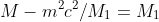 dove risolvendo si ottiene una radice che fa tendere a 0 la quale la possiamo escludere xkè già sappiamo che M_1 si aggira intorno al valore M essendo l'energia totale di riposo al massimo trasformata in energia cinetica con una velocità molto inferiore a quella della luce, mentre l'altra radice è
