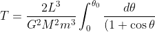 ^2} = \dfrac{2L^3}{G^2M^2m^3}\dfrac{\sin\theta_0 (\cos\theta_0 + 2)}{3(1+\cos\theta_0)^2} = \dfrac{2L^3}{G^2M^2m^3}\dfrac{\sqrt{-\frac{L^4}{G^2M^2m^4 a^2} + \frac{2L^2}{GMm^2 a}}(\frac{L^2}{GMm^2 a} +1)}{\frac{3L^4}{G^2M^2m^4 a^2}} = \dfrac{2}{3}ma^2(\frac{L^2}{GMm^2 a} + 1)\sqrt{-\frac{L^2}{G^2M^2m^4 a^2} + \frac{2}{GMm^2 a}})