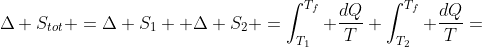 Per la definizione di entropia, la variazione di entropia totale del sistema è la somma delle variazioni entropiche dei due corpi (il sistema dei due corpi è chiuso e isolato termicamente):