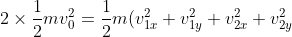 le componenti delle velocità delle due particelle dopo l'urto. La particella 1 è quella che urta il terreno. L'asse x è orizzontale e quello y è verticale. Le condizioni prima dell'urto sono