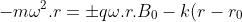 k \frac{x}{\sqrt{x^2 + y^2}}, - B \dot x - (\sqrt{x^2 + y^2} - r_0) k \frac{y}{\sqrt{x^2 + y^2}} , 0))