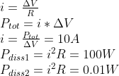P_{tot} = \frac{{\Delta V^2 }}{R} = 10kW \\