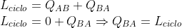 perché l'equilibrio si raggiunge solamente se otteniamo le condizioni che avevamo nello stato A, per questa ragione il ciclo si trasforma da ABC in ABA. Poi considerando che è un ciclo termodinamico e che da A a B abbiamo una trasformazione adiabatica irreversibile abbiamo: