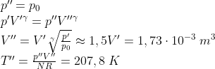 Allora... riprendendo il punto 2 credo che invece della formula consueta dell'adiabatica si possa considerare che l'espansione avviene contro una pressione esterna costante, ergo il lavoro compiuto (qui sta il punto critico) indipendentemente dal fatto che il processo sia reversibile o meno... è sempre uguale a e l'espansione avviene a spese dell'energia interna del gas: