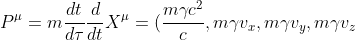Ora sfruttando il fatto che dalle trasformazioni di lorentz otteniamo , deriviamo il quadrivettore posizione rispetto al tempo proprio e lo moltiplichiamo per la massa (altro invariante) per ottenere un altro quadrivettore: