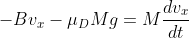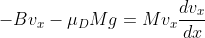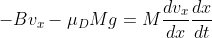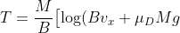 \bigr]^{v_c}_0 = \frac{M}{B} \log \Bigl( \frac {B v_c + \mu_D M g}{ \mu_D M g} \Bigr) )