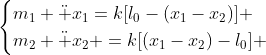 m_2 \ddot x_2 =k[(x_1-x_2)-l_0] \\