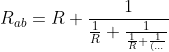 Dunque. Vediamo un attimo se funziona prendendo direttamente in considerazione direttamente la prima maglia. Facciamo finta di stare guardando il circuito come se fossero le rotaie di un treno, in piedi su AB con il resto davanti. Secondo me la resistenza equivalente in essa può essere considerata come R, cioè la resistenza del cavo stesso, collegata in serie con il parallelo tra l’altra R, il segmento laterale non in comune con altre maglie facciamo a sinistra, e una seconda resistenza equivalente (proprio perché l’ho definita come un a serie tra una resistenza R, in questo caso rappresentata da per es. dal segmento laterale di destra, e una seconda resistenza equivalente, che rappresenta il segmento in comune con la maglia successiva).