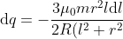 (\hat{r} \cdot \vec{\textup{d}A})-\vec{m}\cdot \vec{\textup{d}A}}{(l^2+\bar{r}^2)^{3/2}} = \frac{\mu_0 m \bar{r}(3\textup{cos}^2\theta-1)\textup{d}\bar{r}}{2(l^2+\bar{r}^2)^{3/2}}=\frac{\mu_0 m \bar{r}(2l^2-\bar{r}^2)\textup{d}\bar{r}}{2(l^2+\bar{r}^2)^{5/2}})