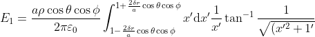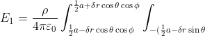 ^2-1}}=\frac{2\rho \cos^2\theta\cos^2\phi}{\pi \varepsilon_0}\tan^{-1}{\frac{1}{\sqrt3}}\delta r=\frac{\rho \cos^2\theta\cos^2\phi}{3 \varepsilon_0} \delta r)