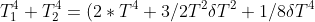 ^4 = (T^4 + 2 T_1 \delta T + 3/4 T^2 \delta T^2 + 1/2 T \delta T^3 + 1/16 \delta T^4))