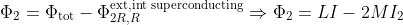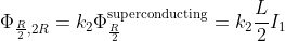 the only regions of the ring with smaller inner radius and larger outer radius, and calculating the fluxes through the plane of the ring in the presence of the two superconductors, the intermediate step is given - as one might assume - by figuring out the net fluxes, constant at