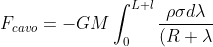 ^2} + \int_0^{L+l}\omega^2\rho \sigma(R+\lambda) d\lambda= -GM\rho \sigma(\frac {-1}{R+L+l}+\frac {1}{R}) + \omega^2 \rho \sigma [\frac{(R+L+l)^2}{2}-\frac{R^2}{2}])
